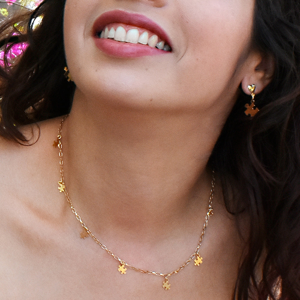 Autism Awareness Charm Puzzle in Blue Acrylic Choker