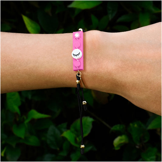 Black String Eyelashes Dot w/ White Brick Bracelet