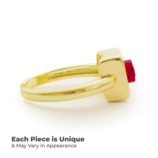 Golden Hug Square Trans-Red Brick Gold-Plated Ring