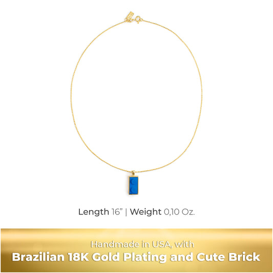 Twin Blue Brick Charm with Gold Plated Chain