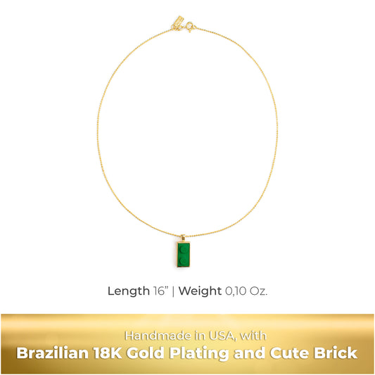 Twin Green Brick Charm with Gold Plated Chain