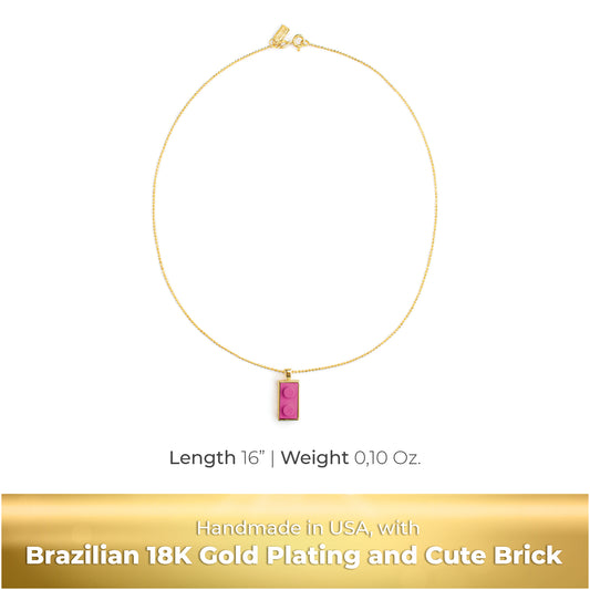 Twin Pink Brick Charm with Gold Plated Chain