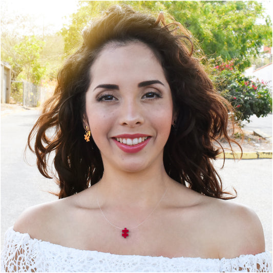 Autism Charm Fun Puzzle in Red Acrylic Choker Necklace