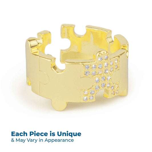 Gold Platted Puzzle Shapes Ring - Autism Awareness