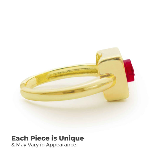 Golden Hug Square Trans-Red Brick Gold-Plated Ring
