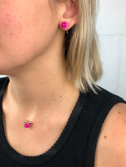 Little Flower Brick Stud Earrings White Pink