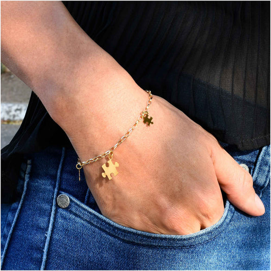 Autism Awareness Gold Plated Bracelet with Puzzles