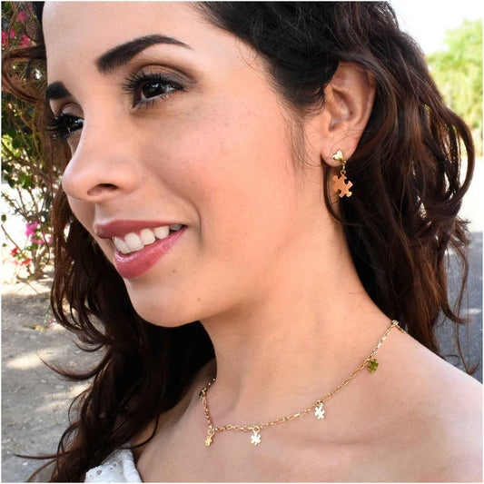 Autism Awareness Gold-Plated Chain with Charm Puzzles