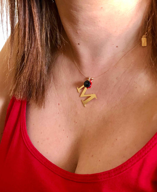 Initial Letter Flower Brick Collection Nylon Necklace 16'