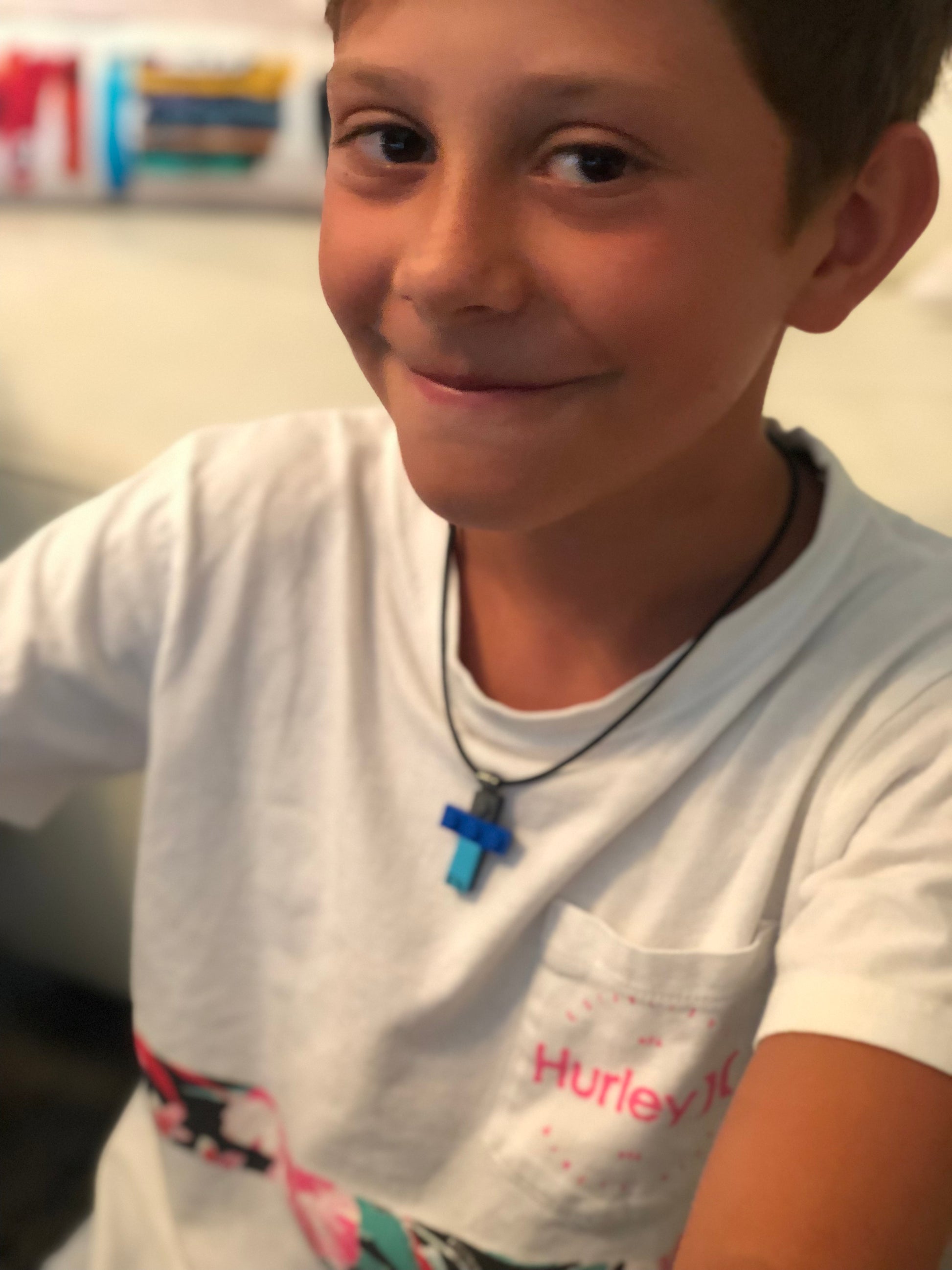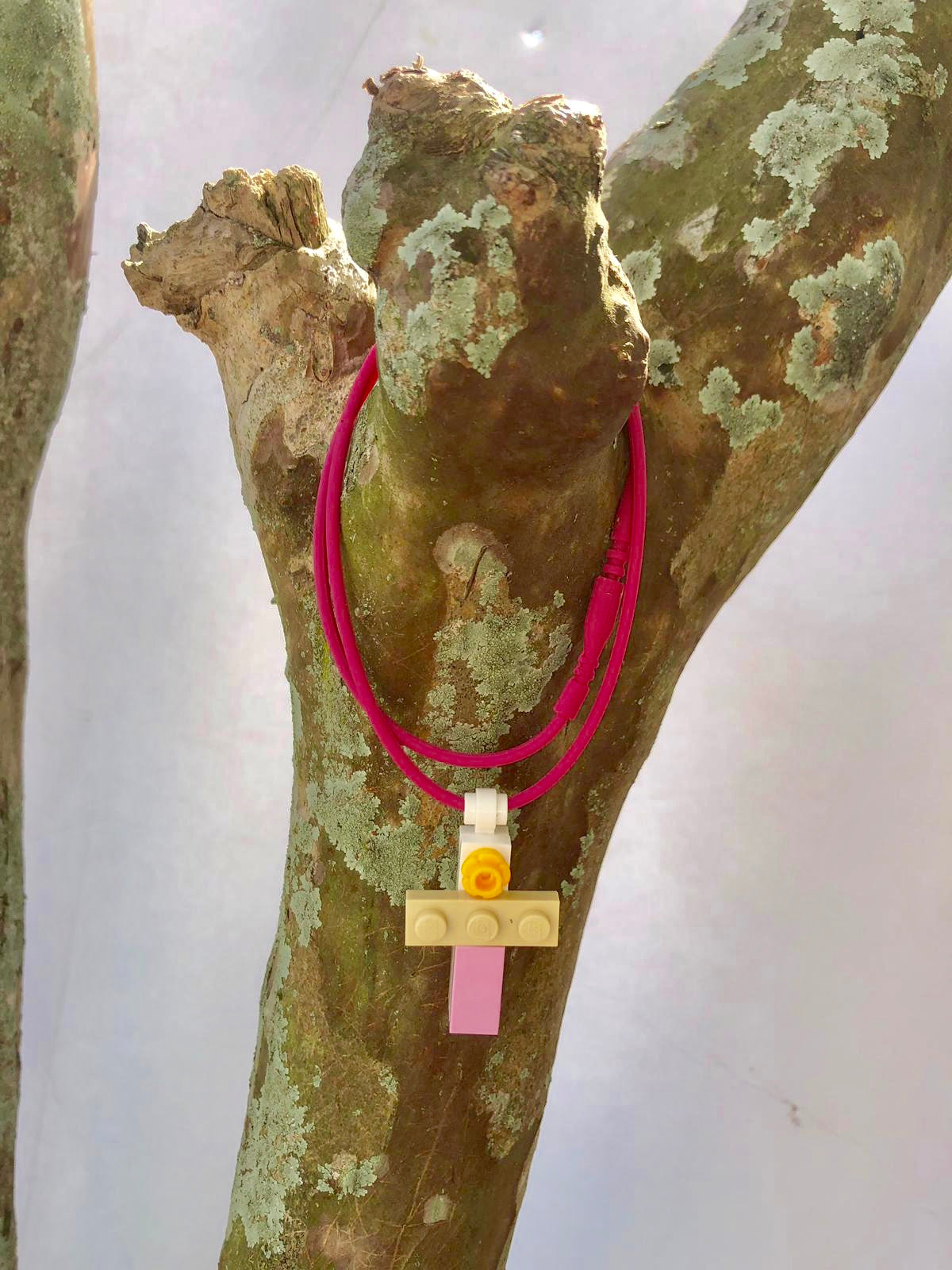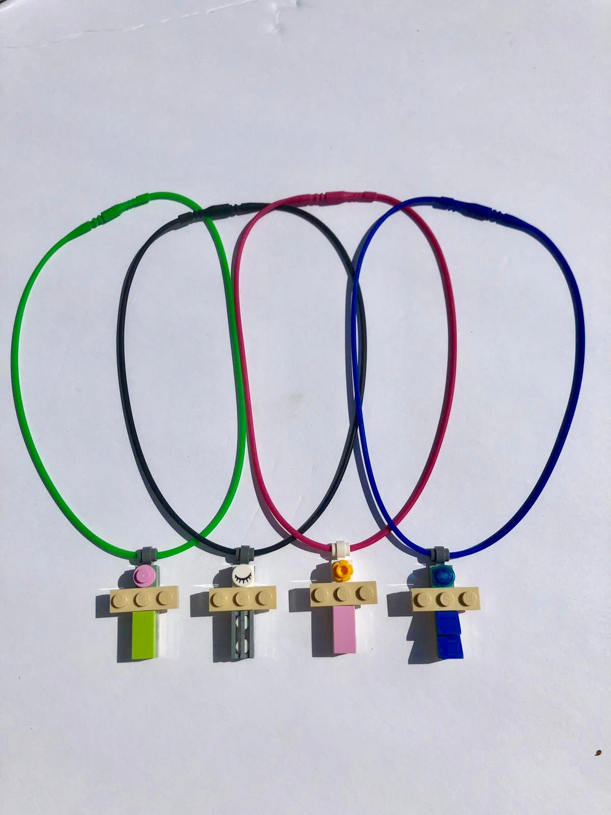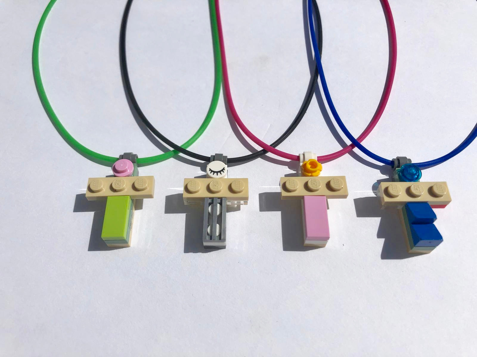 super trendy and fashion necklace elastic with a handmade original cross with Lego bricks.