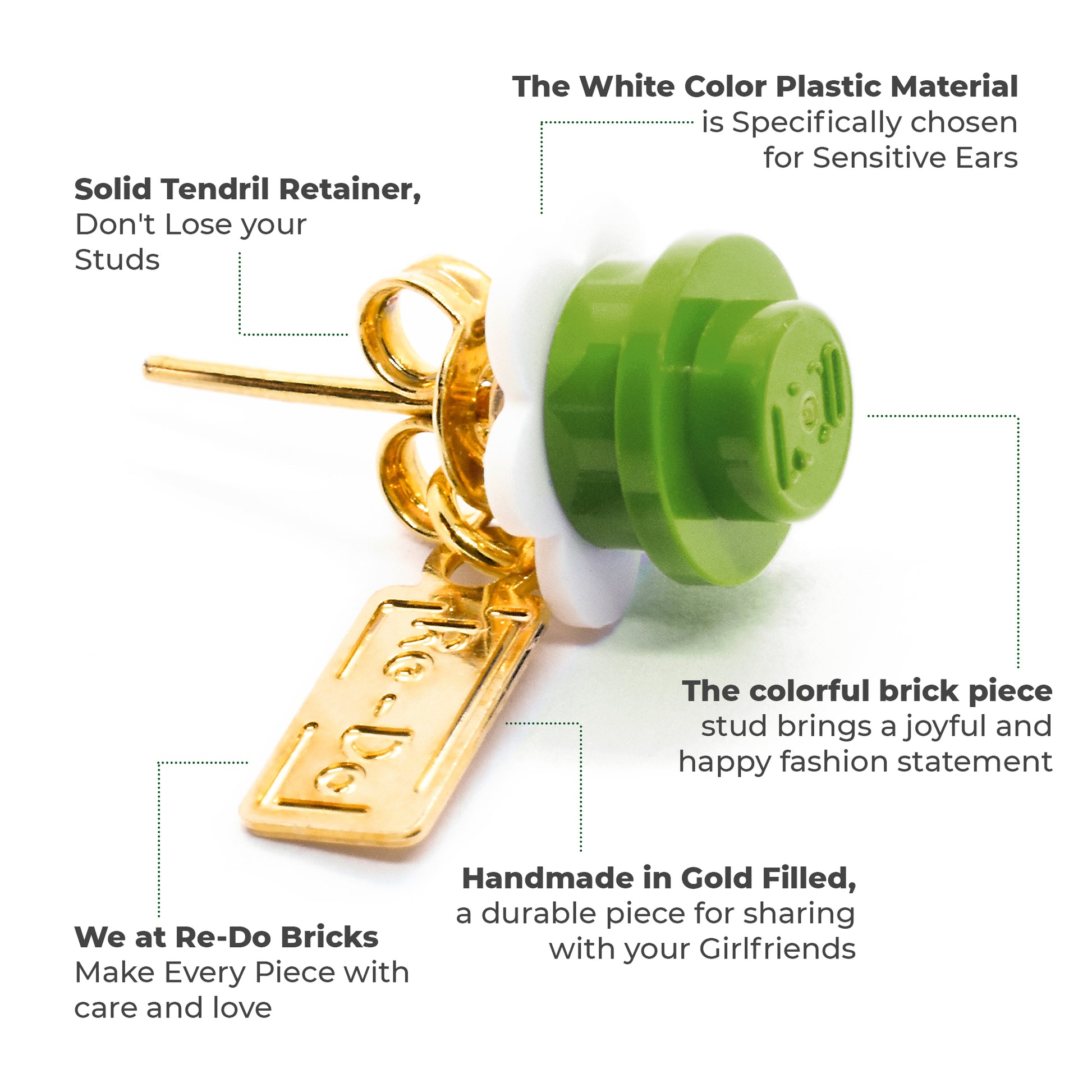 🌸 [HYPOALLERGENIC, TAKE CARE OF YOUR EARS] It's important for an accessory you use everyday to be safe and comfy. The gold platted grip and the easily washable plastic brick pieces of our stud earrings will warrant prolonged use with no worries.
