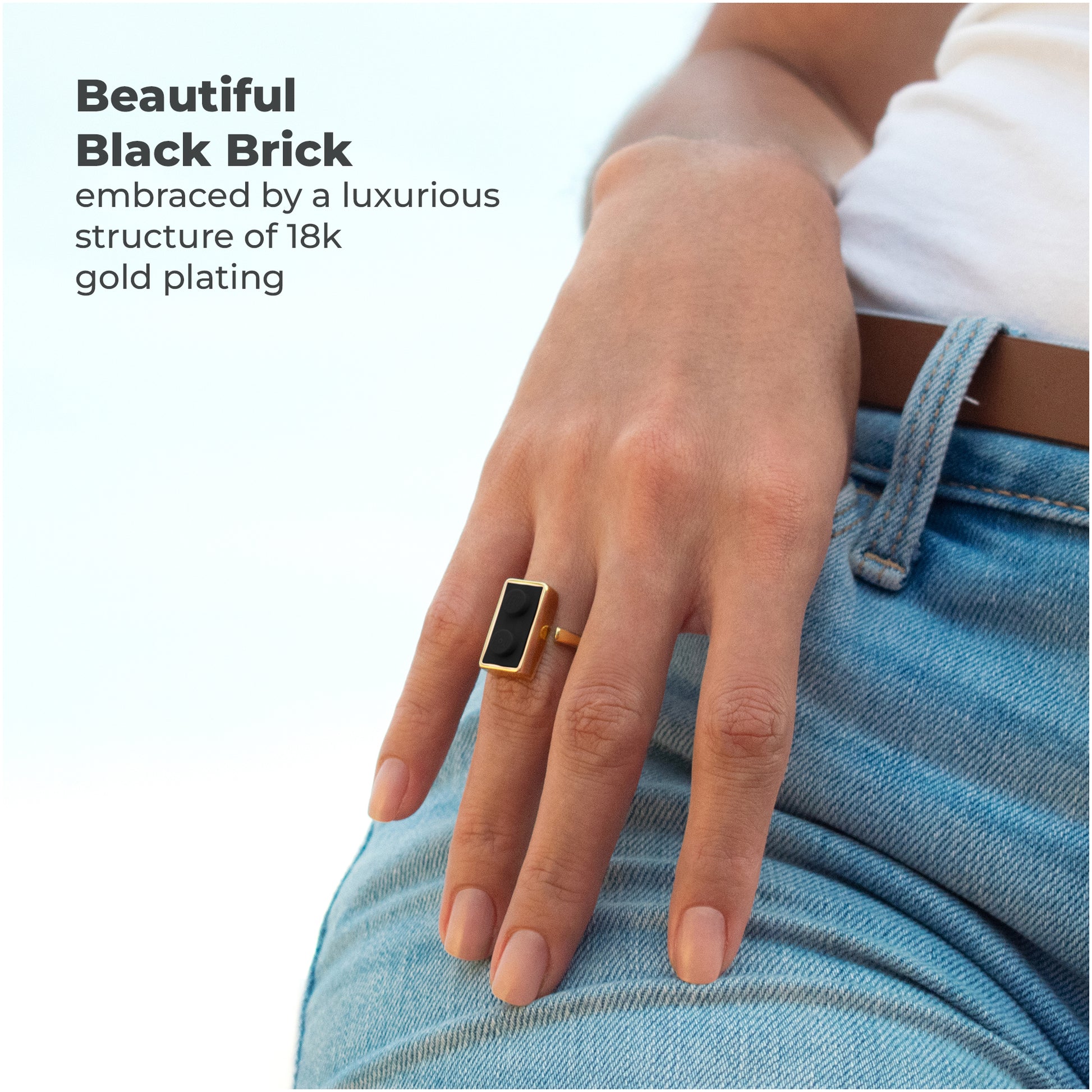 Golden Hug Twin Black Brick Gold-Plated Ring