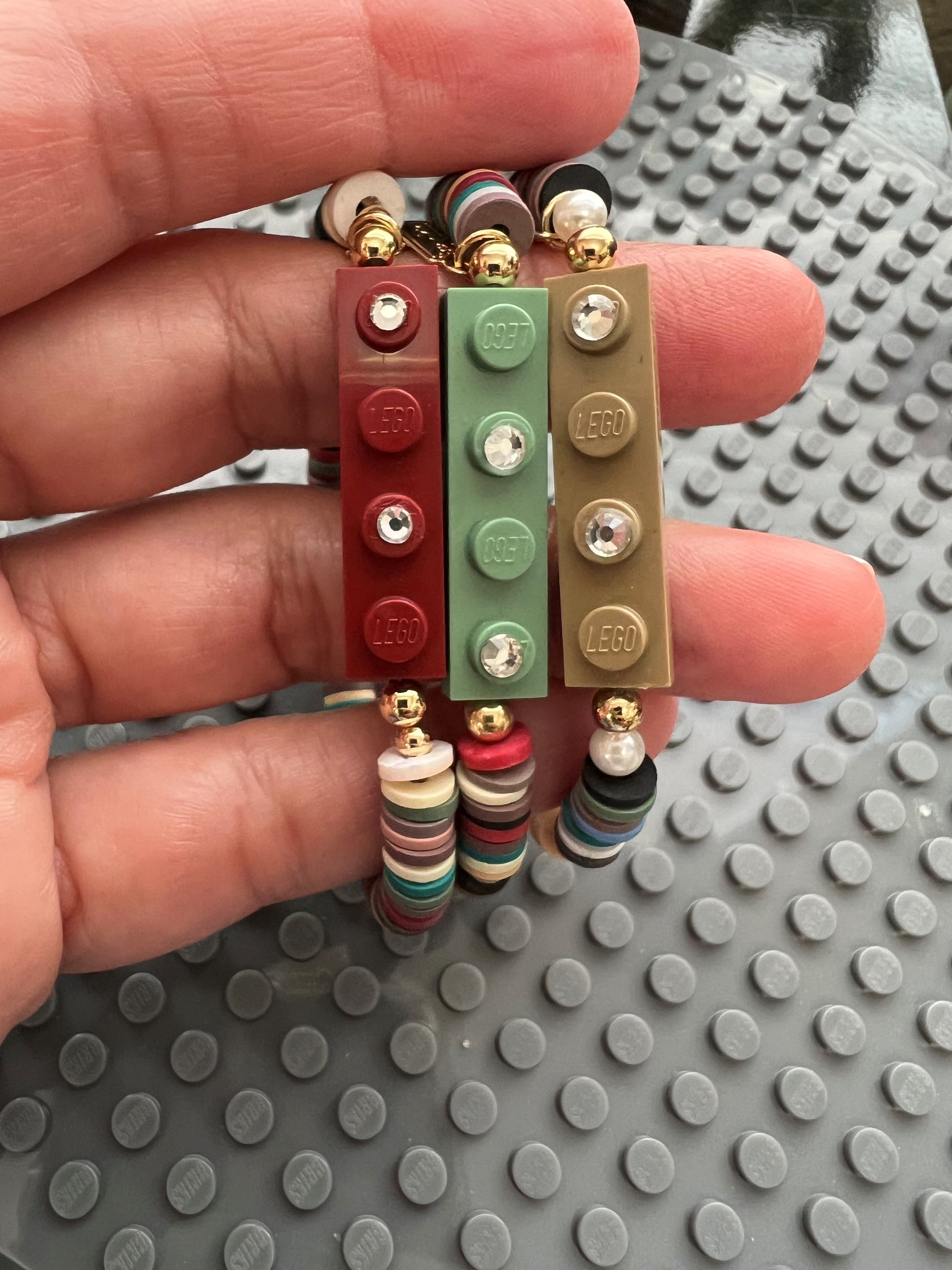 ❤️ [A DURABLE, HANDMADE PRODUCT] The brick pieces are durable and easy to clean, the little golden orbs keep everything well arranged, even when dancing or playing. The cords are resistant, yet easy on the skin and adjustable for most arm's sizes.