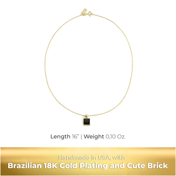 ❤️[DIMENSIONS] Chain: 16 in long. Brick Charm: Length: 0.4 in x Wide: 0.4 in x Thick: 0,1 in. Weight: 0.10 Oz. Lightweight and very comfortable golden necklace ready to wear with your favorite outfit. It will retain its shine and color with daily use.