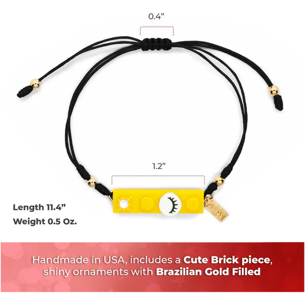 ❤️ [A DURABLE, HANDMADE PRODUCT] The brick pieces are durable and easy to clean, the little golden orbs keep everything well arranged, even when dancing or playing. The cords are resistant, yet easy on the skin and adjustable for most arm's sizes.